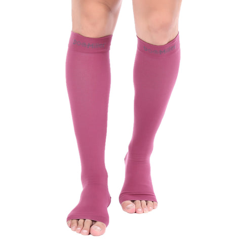 Doc Miller’s Open Toe Compression Socks are designed to be breathable, durable, and comfortable. Constructed with premium fabric containing medical-grade Nylon (77%) and Spandex (23%) for a snug fit that is also comfortable. The lightweight fabric combined with an open toe design allows it to be worn as a stocking with dress clothes as well as during a workout. The gradient pressure allows for healing from injury and post-surgery recovery. The Open Toe Sock boosts blood circulation in your legs and feet.