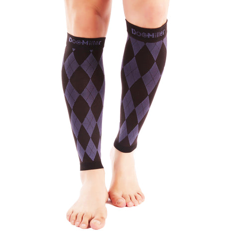 Experience premium support with the arygle black/purple compression sleeve 20-30  by Doc Miller, designed to combine style, comfort, and therapeutic benefits. Perfect for workouts, long workdays, or travel, these sleeves help improve circulation, reduce leg fatigue, and accelerate recovery while maintaining a sleek, all-black look. Explore our full Calf Compression Sleeve Collection to find additional colors and styles.