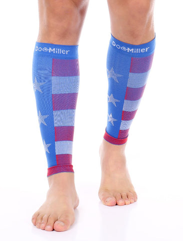 Doc Miller Compression Calf Sleeve 20-30 mmHg US Flag are designed to be durable, breathable, and comfortable. Constructed with premium fabric containing medical-grade Nylon (77%) and Spandex (23%) for a snug, comfortable, and compressive fit.